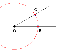 Centro de compasso em A, raio qualquer, traça-se um arco determinando pontos B e C.