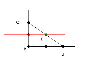 Marcar pontos C e B aleatórios sobre os lados do angulo reto.